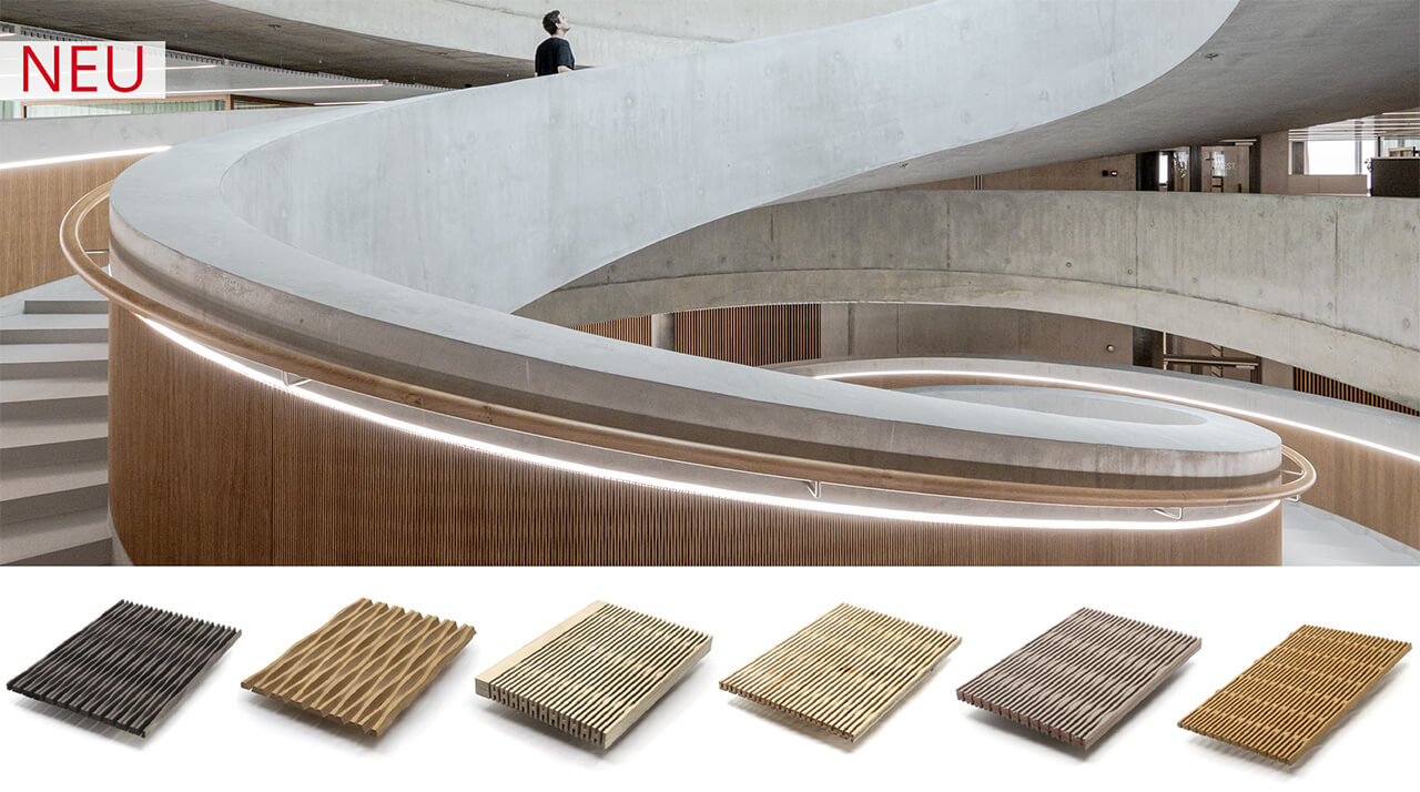 Unsere Produktpalette ist vielfältig und umfasst z.B. Akustiklamellen, Akustikpanels, Akustik Baffel, Akustik-Deckenelemente, Akustik-Paneele, Akustikplatten Holz und Akustikwände. Nicht zu vergessen unser LightBeton® mit echter Betonoberfläche sowie StoneVeneer, dem echten Steinfurnier mit der spaltrauen Haptik.