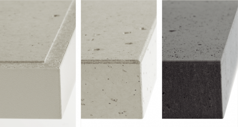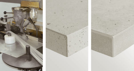 The panels that are provided with a 1.5 mm homogeneous concrete covering layer on both sides are easy to machine, e.g. for milling/shaping, bevelling and producing roundings.